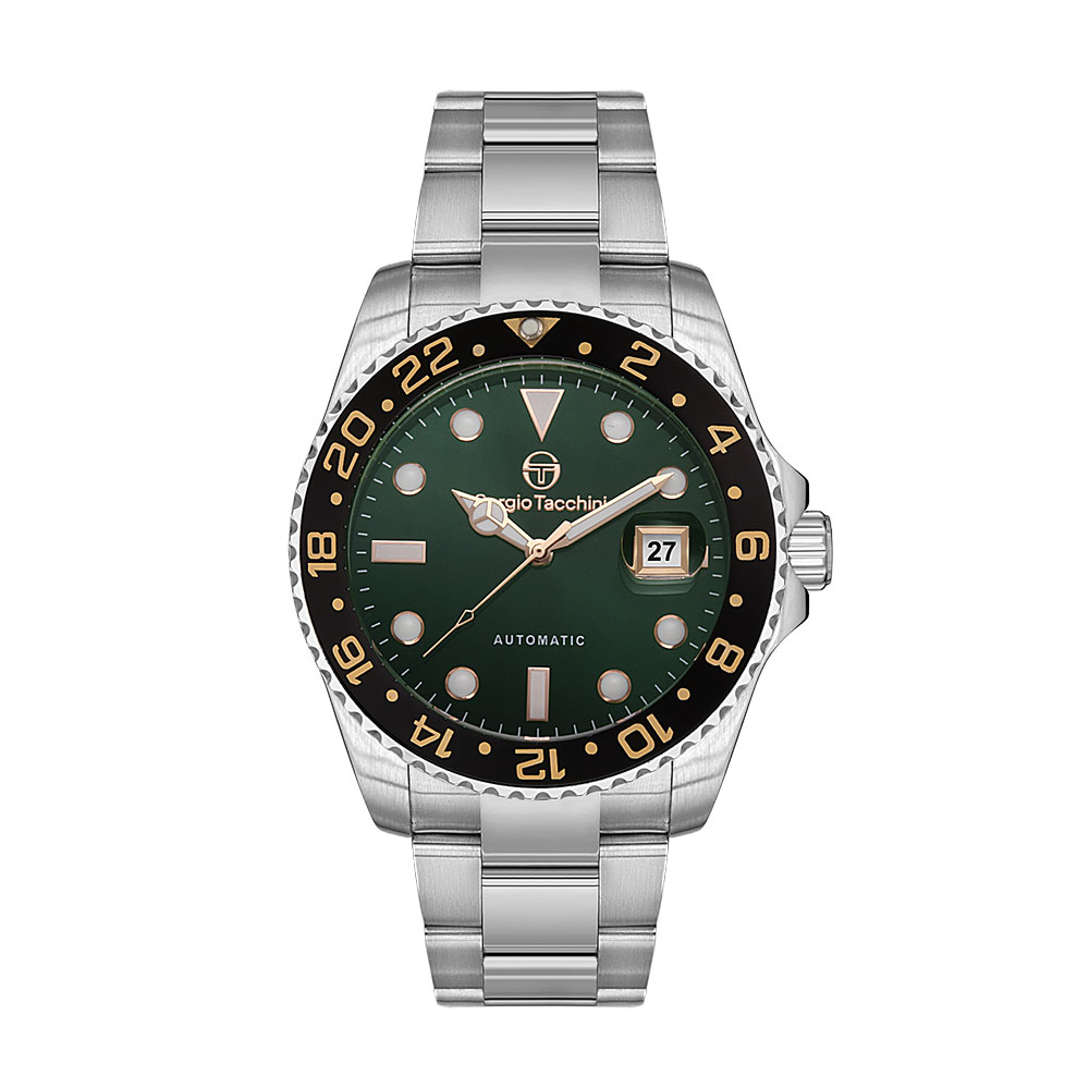 Cadranul analogic verde, cu afisaj data, se remarca prin designul modern si claritatea excelenta oferita de geamul din cristal mineral. Carcasa rotunda, din otel inoxidabil argintiu, de 42 mm diametru si grosime de 13 mm, confera o rezistenta sporita si un aspect elegant, potrivit pentru orice tinuta.