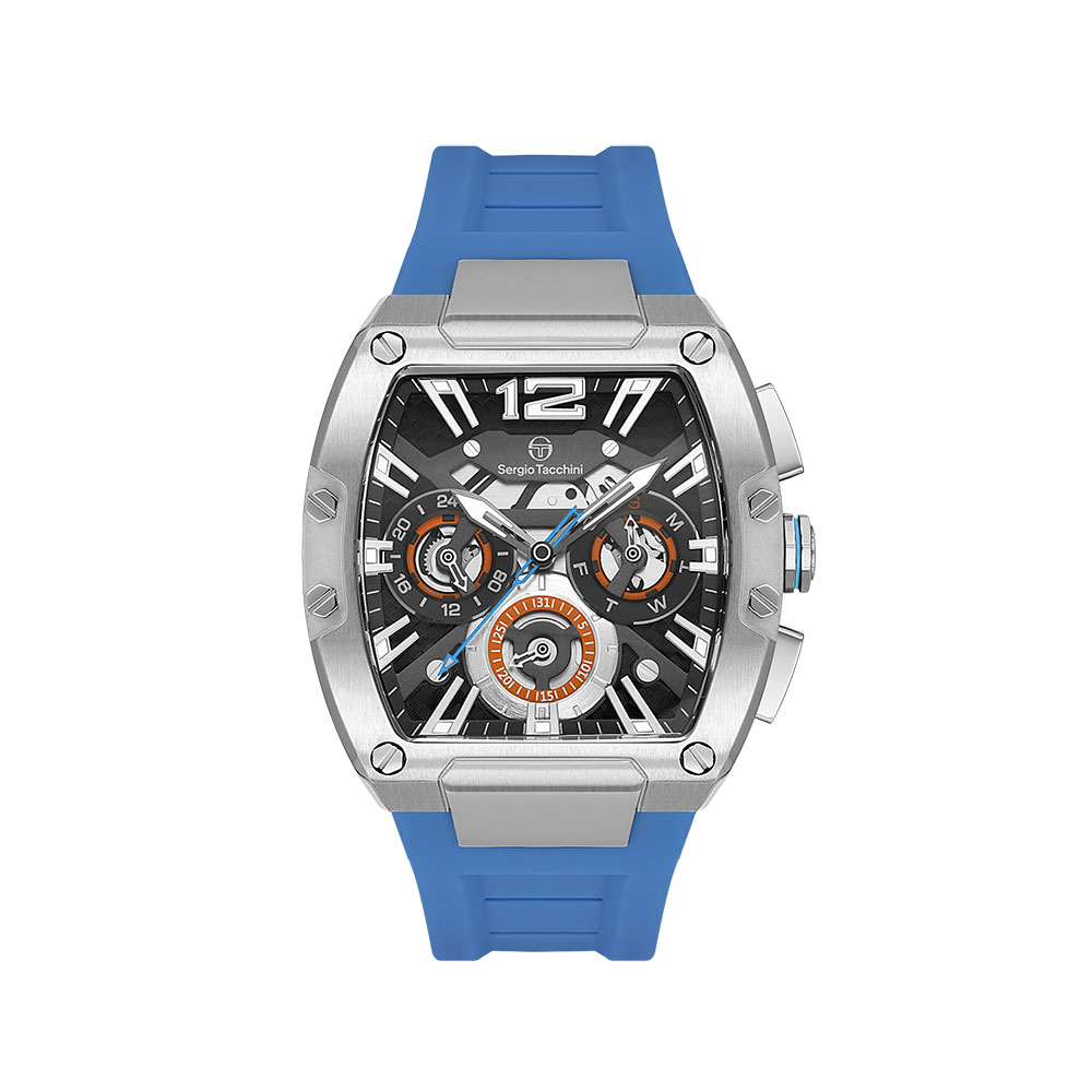 Ceasul Sergio Tacchini Heritech este echipat cu o curea rezistenta din silicon de culoare albastra, avand o lungime de 210 mm si latimea de 29 mm, care se potriveste perfect pe orice incheietura. Sistemul de inchidere tip catarama garanteaza siguranta si confortul necesar in activitatile zilnice.