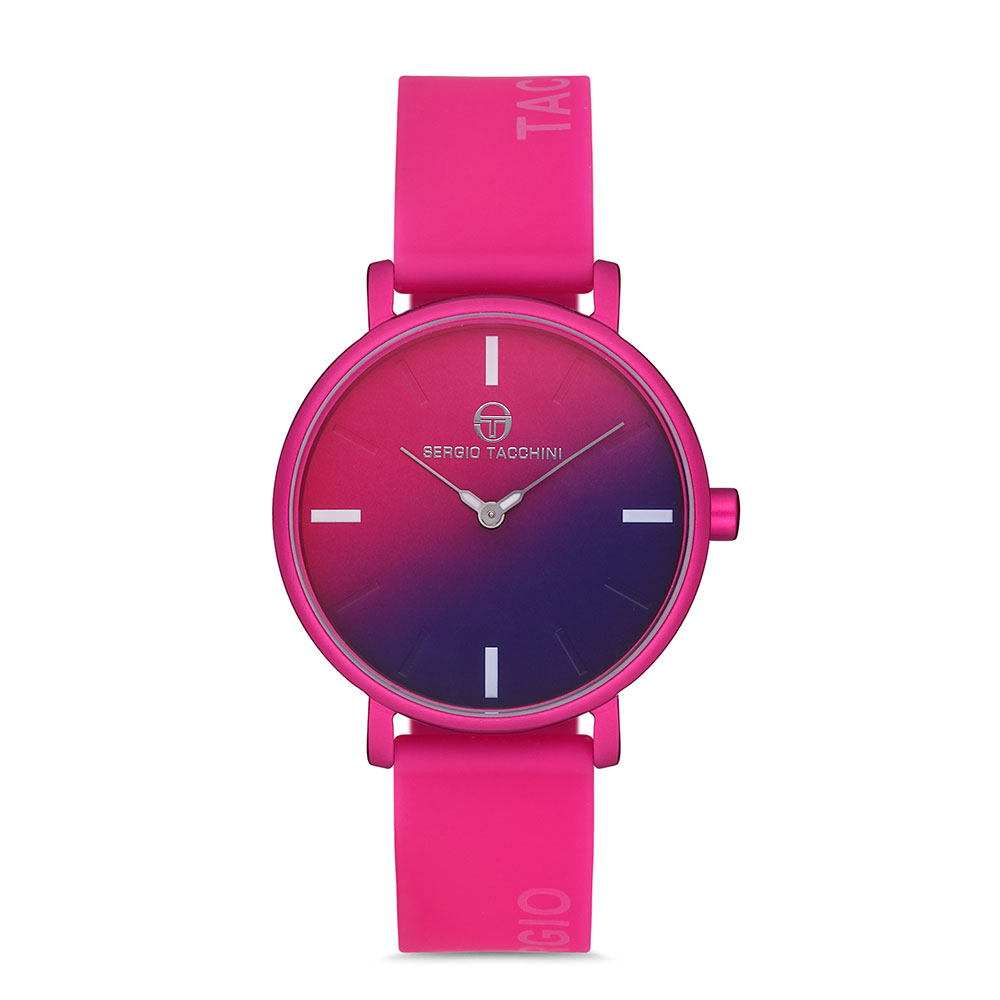 Partea centrala a colectiei Streamline este designul sau distinctiv, care se remarca prin carcasa rotunda din aluminiu de 36 mm, in nuante vibrante de fucsia. Cadranul bicolor adauga un plus de personalitate, iar afisajul analogic iti ofera o experienta clasica de citire a orei.