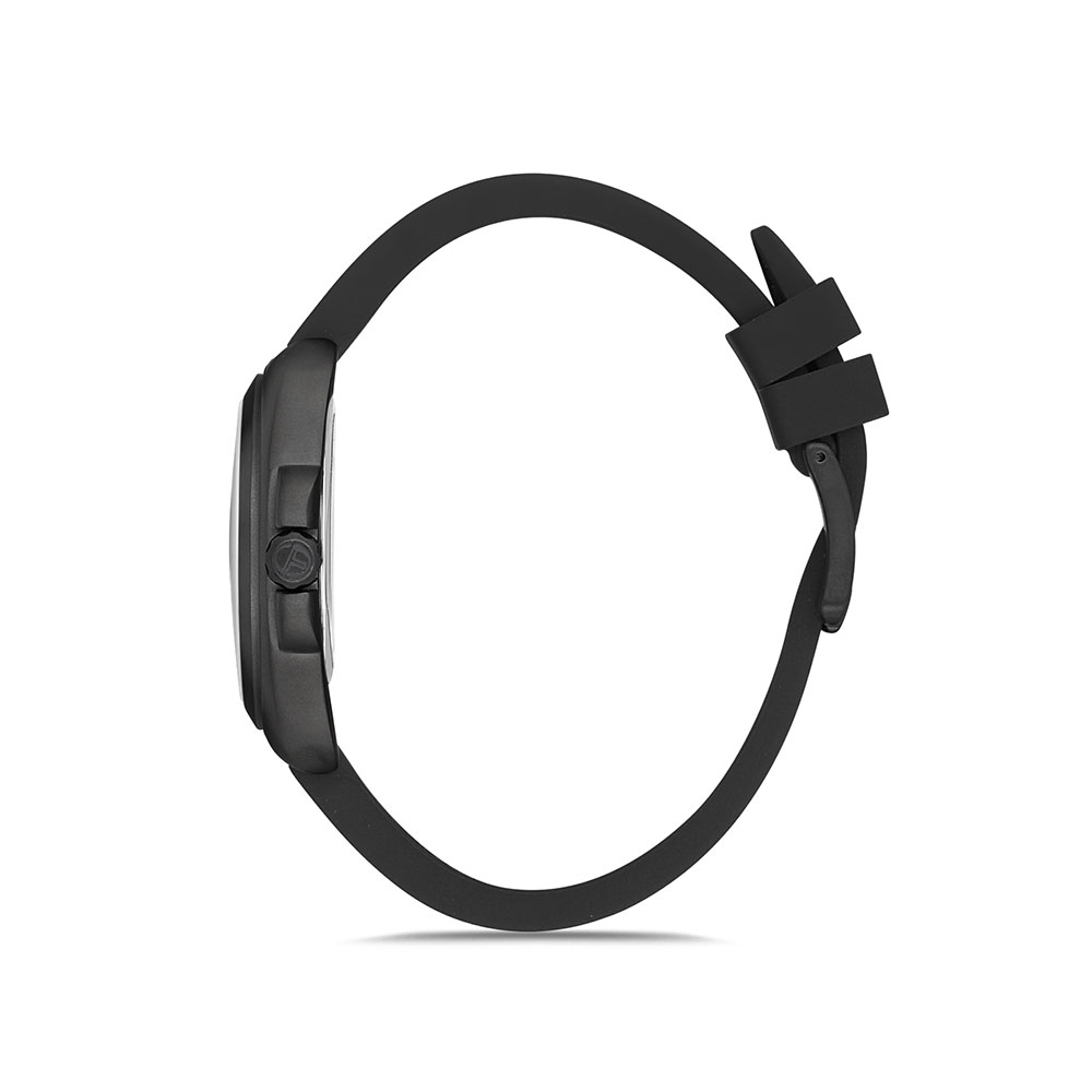 Cureaua din silicon negru, cu o textura aderenta, ofera confort si flexibilitate la purtare, fiind prevazuta cu un sistem de inchidere cu catarama pentru o fixare sigura. Mecanismul quartz japonez asigura o precizie de ±20 secunde/luna, iar afisajul analogic este completat de functia de afisare a datei si zilei saptamanii, adaugand un plus de utilitate.