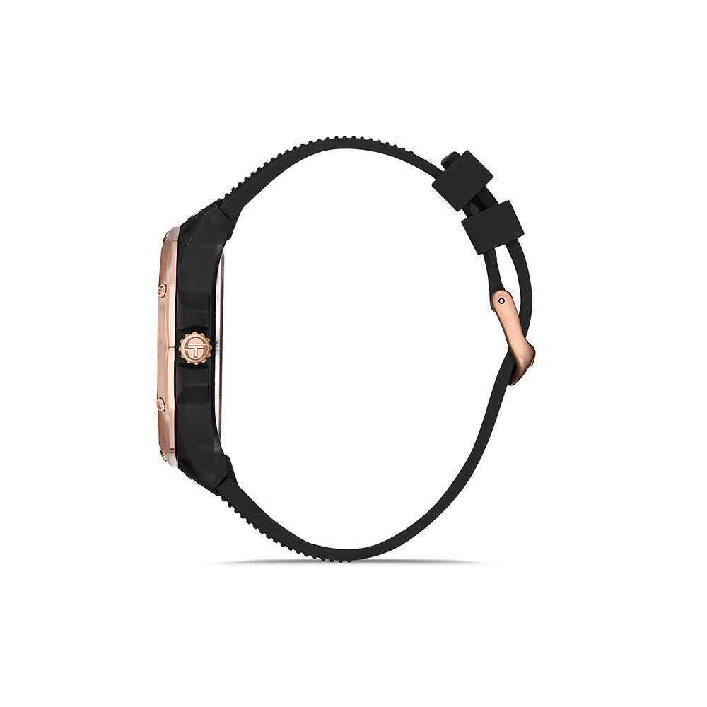 Ceasul Sergio Tacchini Streamline ST.1.10196.2 imbina perfect designul sportiv cu eleganta subtila, oferind un accesoriu sofisticat pentru barbatii activi. Avand o carcasa neagra cu un bezel decorativ in nuanta auriu rose, acest model impresioneaza prin detalii atent lucrate si un aspect modern.