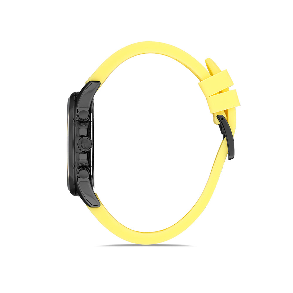 Cadran cu bezel galben; afiseaza data si ziua curente si ora in format 12/24; functie dual time, afiseaza doua fuse orare diferite.