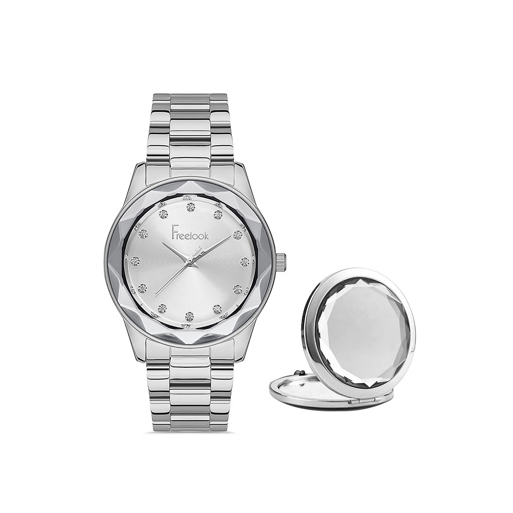 Cu un mecanism quartz japonez de inalta precizie (Vj21c1), ceasul Freelook Belle promite o abatere de maximum ±20 secunde pe luna, asigurand acuratete si durabilitate. Afisajul analogic, protejat de un cristal mineral rezistent la zgarieturi, impreuna cu o carcasa din alama si o bratara din otel inoxidabil in culoare argintiu, adauga o nota de rafinament oricarei tinute. Aceesoriul setului, oglinda prezinta un design asemator ceasului in nuante argintii reflectand stralucire.