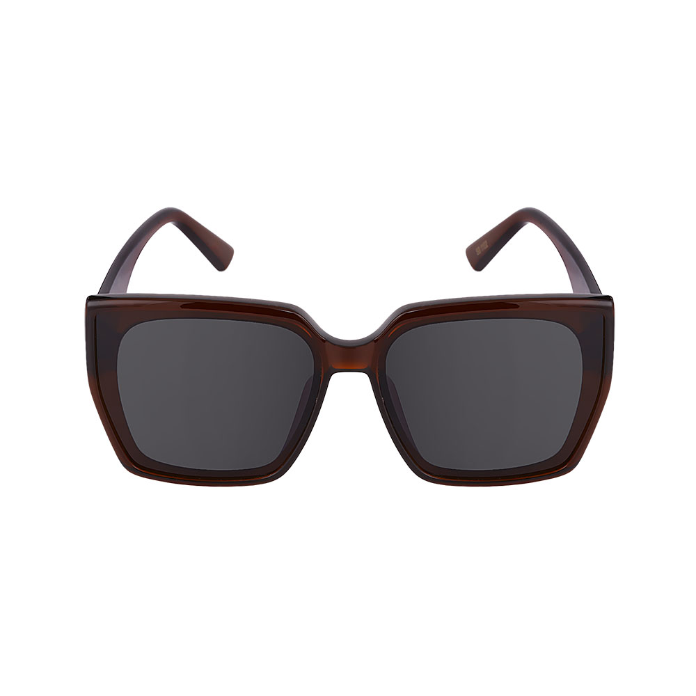 Cu un design oversized trapezoidal, acesti ochelari se potrivesc perfect pe orice forma a fetei, oferind un look sofisticat si la moda. Rama din plastic de calitate in culoare cafeniu este durabila si usor de purtat, iar lentilele de culoare gri sunt realizate din plastic organic, cunoscut pentru lejeritatea sa.