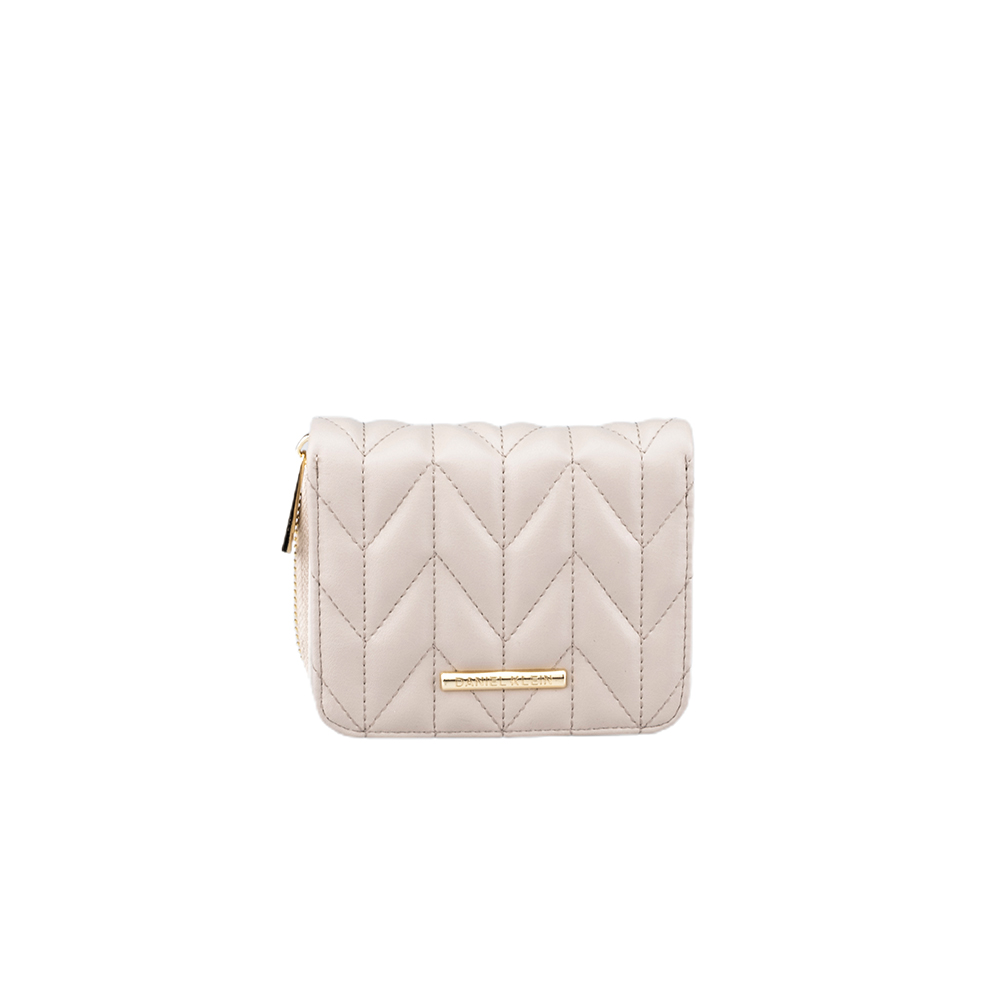 Designul sau compact, in nuanta bej, este accentuat de detaliile metalice aurii, adaugand o nota de rafinament. Interiorul captusit cu material textil asigura protectie pentru obiectele personale, iar sistemul de inchidere cu capsa garanteaza siguranta continutului.