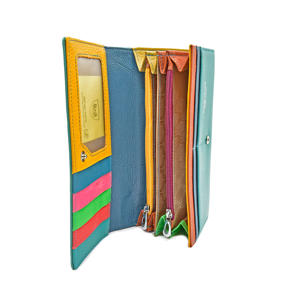 Completeaza-ti tinuta cu portofelul Centro Pelle din piele naturala azuriu, un accesoriu rafinat care imbina stilul, siguranta si functionalitatea. Fabricat din piele naturala de inalta calitate, acest portofel ofera durabilitate si un aspect sofisticat.