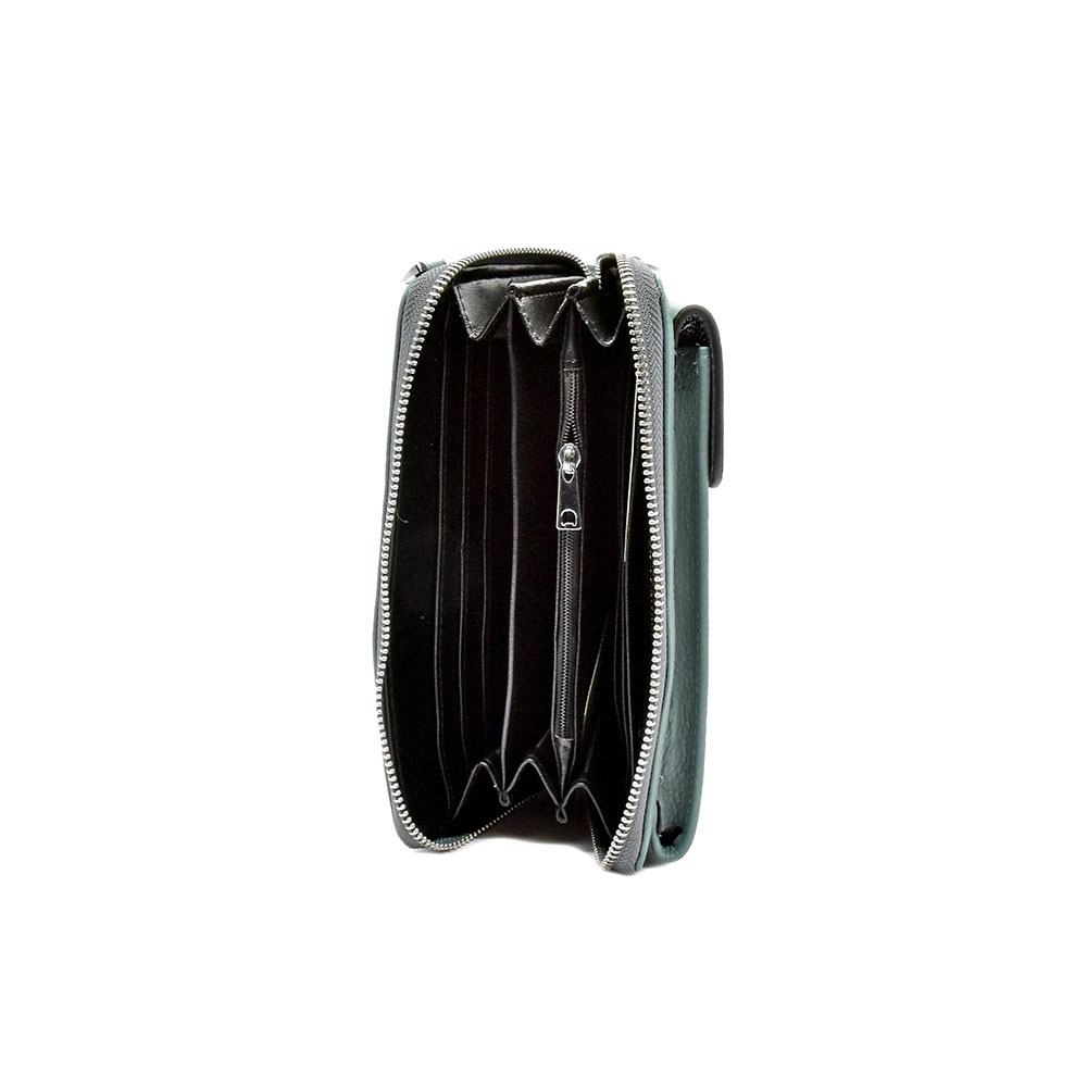 - Design compact si spatios – dispune de 3 compartimente pentru bancnote, un buzunar cu fermoar pentru monede si 10 sloturi pentru carduri si documente.