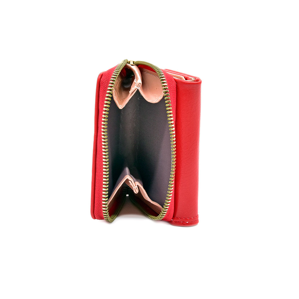 Realizat din piele ecologica de calitate, portofelul se remarca prin textura fina si rezistenta, oferind un aspect elegant si sofisticat. Culoarea sa vibranta de rosu aprins adauga un plus de personalitate si se potriveste perfect cu orice tinuta.