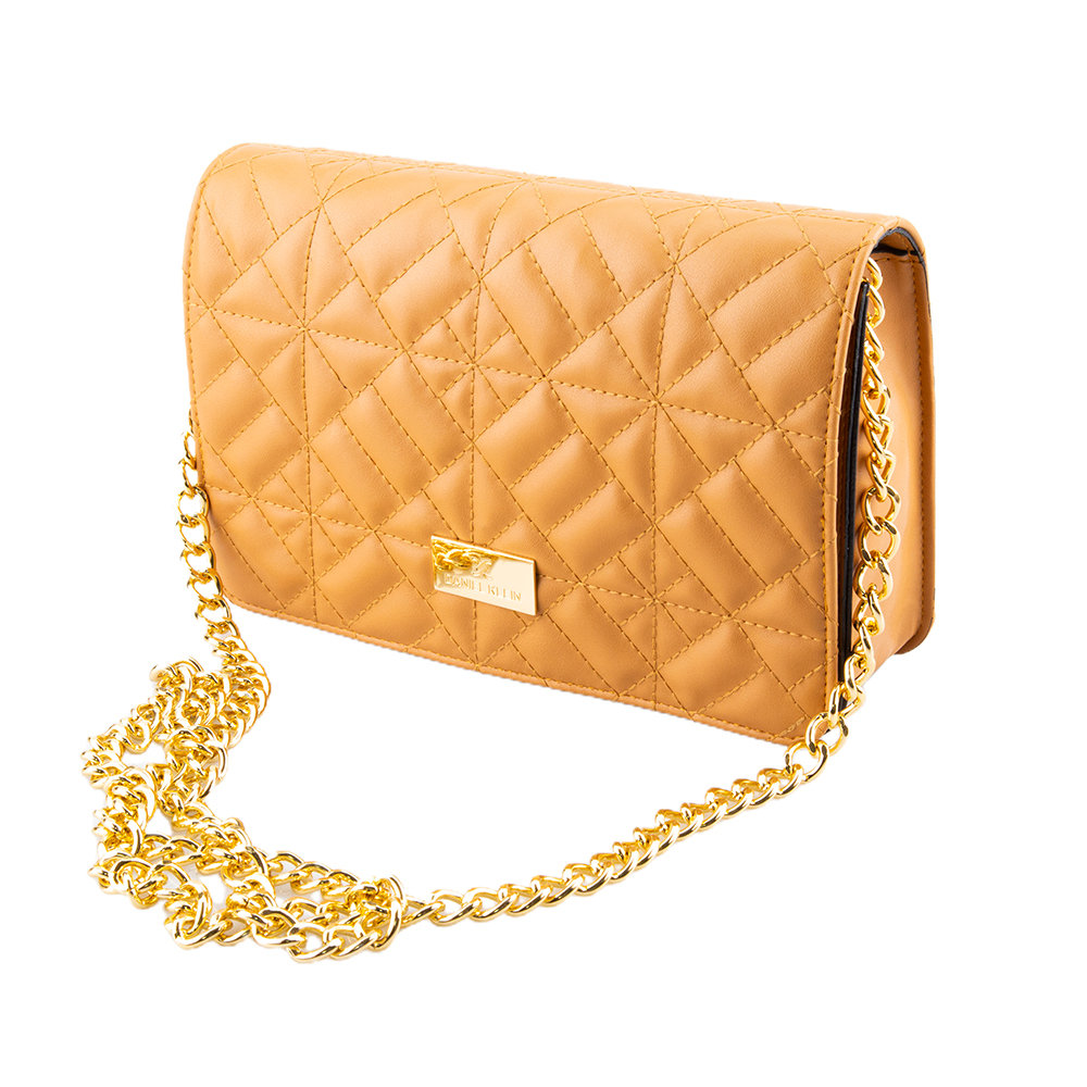 Poseta maro din piele ecologica, cu logo auriu , design din cusaturi suprapuse , inchidere tip plic cu capsa magnetica. Este prevazuta cu un compartiment central avand un buzunar interior cu inchidere cu fermoar. Interiorul este din material textil. Lantul metalic este suficient de lung pentru a fi purtata atat pe umar cat si diagonal. pentru tinute de zi cu zi