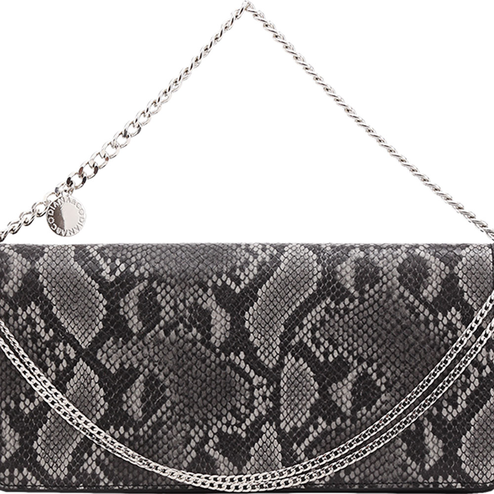 Poseta neagra din piele ecologica Diana./Poseta femei snake print negru din piele ecologica. Interior cu material textil, fara buzunare. Prevazuta cu bareta, tip lant, detasabila., putand fi purtata atat pe umar sau ca si plic.